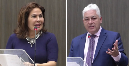 Douglas Fabrício, prefeito de Campo Mourão, ao discursar na sessão solene da Câmara que entregou o Prêmio Mulher Cidadã a 12 mulheres, uma delas a ex-primeira-dama Hosana Tezelli, que estava acompanhado do marido, o ex-prefeito (por 16 anos!) Tauillo Tezelli; sexta-feira. Em tempo: Hosana também discursou, em nome das homenageadas.