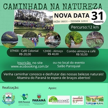 Acontece no próximo domingo (8h) a Caminhada Internacional na Natureza de Altamira do Paraná.