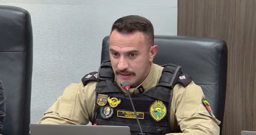Fernando Weiber, 1º tenente do 11º BPM, sobre o fato da polícia não poder fazer a simples retirada das praças das pessoas em situação de rua; em audiência pública na Câmara de Campo Mourão, nesta segunda-feira.