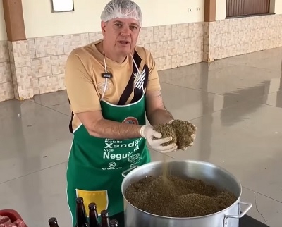 Xandão Donato, prefeito de Corumbataí do Sul, ao mostrar como é feito o tempero do cabrito apressado, o prato típico do município que foi servido em festa no último domingo; em vídeo postado em redes sociais.
