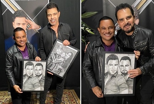 A dupla Zezé di Camargo & Luciano fez nesta segunda-feira o show de encerramento da Expogoio, em Goioerê. A apresentação foi bancada pela prefeitura e teve entrada franca. Assim, muita gente esteve no Parque de Exposições. Entre elas estava o “recepcionista oficial” de Campo Mourão, Magnum Alves. Ele se encontrou com os cantores e entregou para eles um desenho que fez da dupla.