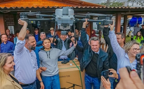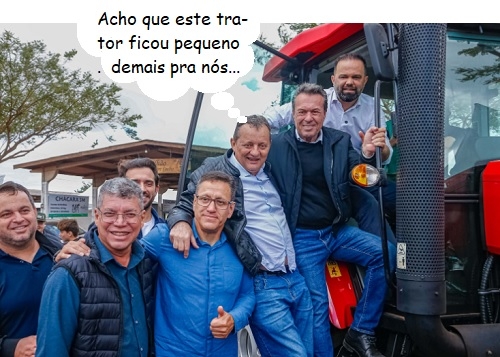 O clic é desta sexta-feira, em Goioerê, onde os secretários de Estado Roni Miranda (Educação) e Márcio Nunes (Agricultura) fizeram a entrega de equipamentos a 11 colégios agrícolas, incluindo tratore cabinados. O prefeito Pedro Coelho e o vice-prefeito Brito da Saúde se juntaram aos secretários na hora da foto com o trator.