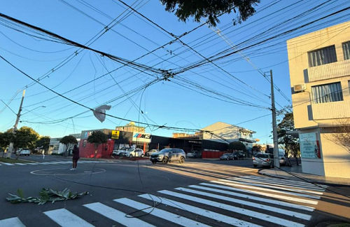 Fios soltos (e perigosos) na av. Manoel Mendes de Camargo, nas proximidades da agência do INSS.