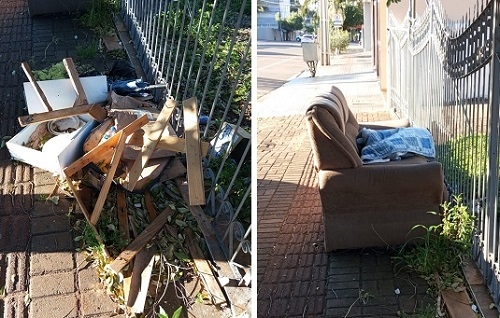 O lixo continua na rua São Josafat. Tem até sofá.