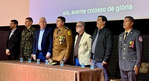 Uma solenidade nesta quinta-feira, na Igreja Palavras que Curam, em Campo Mourão, comemorou os 171 anos da Polícia Militar do Paraná. Foram feitas homenagens, como a entrega da Medalha Sentinela do Centro-Oeste, honraria criada pelo 11º BPM e destinada aos policiais que se destacaram no desempenho de suas funções na área de atuação da unidade. Entre os presentes, o prefeito Douglas Fabricio, o vereador Sidnei Jardim e, claro, o comandante do 11º BPM, tenente-coronel Willian Dieimes Silveira.