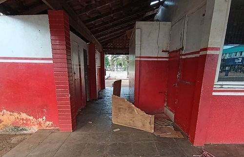 Quiosque abandonado na praça São José vira abrigo de moradores de rua.