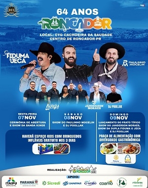 A prefeitura de Roncador divulgou a programação de aniversário de 64 anos do município.
