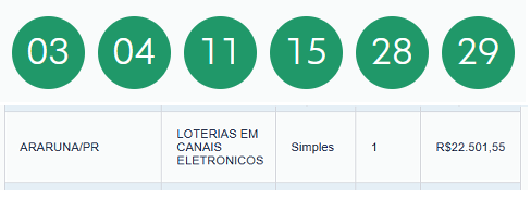 Ninguém acertou as seis dezenas da Mega Sena que foram sorteadas nesta quinta-feira. Assim, o prêmio segue acumulado e deve chegar a R$ 40 milhões no concurso que será sorteado neste sábado. A quina teve 80 apostas ganhadoras, três delas no Paraná, sendo uma de Araruna, feita através de canais eletrônicos. Prêmio? R$ 22,5 mil.