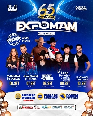 A abertura terá show com Mariana & Mateus e o encerramento será com Luciano Camargo (da dupla com o irmão Zezé).