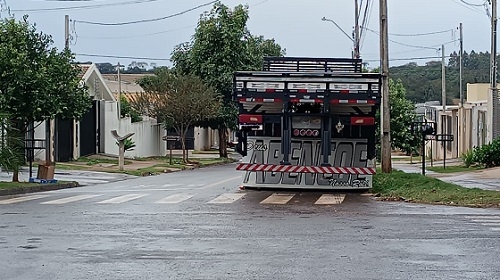 “Caminhão estacionado em esquina do jardim Veneza (Grande Lar Paraná). Perigo para quem vira a esquina”.