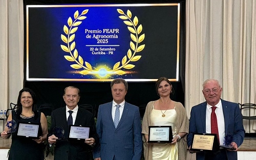 O presidente do Conselho de Administração da Coamo, José Aroldo Gallassini, foi homenageado, nesta segunda-feira, em Curitiba, pela Federação dos Engenheiros Agrônomos do Paraná. Ele recebeu o prêmio FEAPR de Agronomia 2025. A entrega foi feita pelo presidente da entidade, Cesar Veronese, e pelo secretário de Estado da Agricultura e Abastecimento, Marcio Nunes. Outros três profissionais foram premiados.