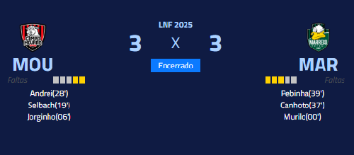 Campo Mourão empatou com o Marreco em 3 a 3, neste domingo, no Ginasião, pela Liga Nacional de Futsal.