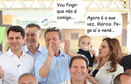 O clic é desta quinta-feira durante a visita do governador Ratinho Jr a Campo Mourão. Na hora da foto oficial com os prefeitos da Comcam, o secretário de Estado Marcio Nunes (Agricultura) ficou ao lado da esposa, a vice-prefeita Fátima Nunes, que estava com um netinho no colo.