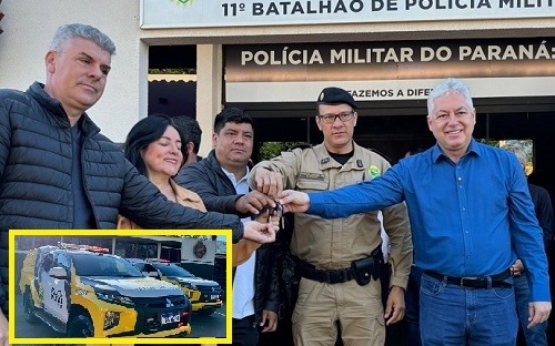 Aconteceu nesta sexta-feira a entrega oficial de duas novas viaturas para o 11º BPM de Campo Mourão. São duas Mitsubishi L200/Triton 4x4. O prefeito Douglas Fabrício participou com direito a receber agradecimento já que, quando deputado, destinou recursos para isso. Os vereadores Edilson Martins, Eliane do Café e Hélio HG também prestigiaram a entrega.