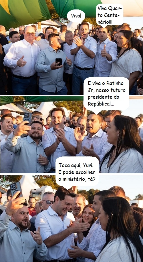 Os cliques são da recente visita que o governador Ratinho Jr fez a Quarto Centenário para inaugurar a reconstrução da rodovia que liga a cidade a Goioerê. Quem aparece todo animado ao lado e cumprimentando o governador é o vice-prefeito de Quarto Centenário, Yuri Cardoso Cairos.