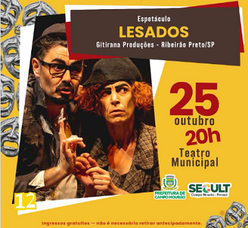 Termina neste sábado a mostra oficinal do 22º Festival de Teatro de Campo Mourão. O encerramento será com o espetáculo “Lesados”, da Gitirana Produções, de Ribeirão Preto/SP. Começa às 20h com entrada gratuita. A classificação indicativa é de 12 anos.