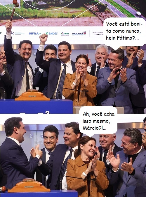 Os cliques são de quinta-feira, no leilão de rodovias do Paraná, na Bolsa de Valores, em São Paulo. A comitiva liderada pelo governador Ratinho Jr incluiu três mourãoenses – o prefeito Douglas Fabrício e o casal Márcio Nunes (secretário de Estado da Agricultura) e Fátima Nunes (vice-prefeita).