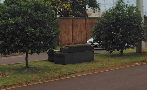 Sofá no canteiro central próximo a subestação da Copel.
