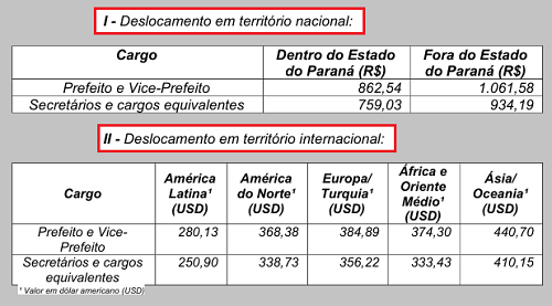 “O objetivo de incluir diárias para viagens fora do território nacional é para que o agente político possa representar o município em missões diplomáticas ou institucionais (parcerias, convênios, cooperação internacional), participar de feiras, congressos, simpósios ou atrair investimentos ou intercâmbio tecnológico/cultural, captar recursos, investimentos ou, ainda, integrar o município com redes internacionais”.