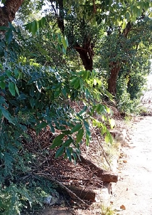 O que é isso? Um bosque? Não, é a calçada da perimetral Tancredo Neves, esquina com rua Santa Crua. Faz cerca de um ano que o local está cheio de galhos. As árvores caíram ano passado com uma ventania.