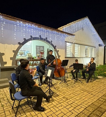 A primeira noite do Natal no Museu, em Campo Mourão, contou com a participação da Orquestra de Câmara Opendoor, que apresentou a peça “Camerata Natalina a 7 Cordas”. Foi nesta terça-feira, quando o Museu funcionou até as 22h. O horário especial de funcionamento será mantido na quarta e quinta-feira.