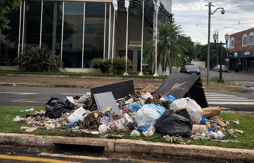 Marcio Berbet, vereador em Campo Mourão, em postagem em redes sociais que mostra lixo deixado em canteiro central em frente à Câmara Municipal; domingo.