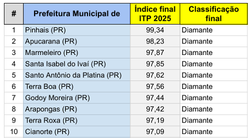O Tribunal de Contas do Estado atualizou o Índice de Transparência Pública das prefeituras do Paraná.