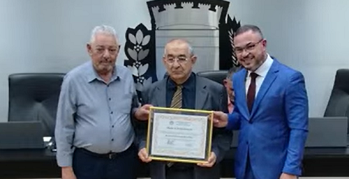 A Câmara de Campo Mourão realizou sessão solene nesta segunda-feira à noite. Desta vez foi para entregar moção a Juvenal Pedroso da Silva Filho, o “Juvenal do Xaxixão”. A entrega foi feita pelo vereador autor da homenagem, Márcio Berbet, e pelo assessor Francisco “Kiko” Monteiro, que representou o prefeito Douglas Fabrício. Apenas três vereadores participaram da sessão.
