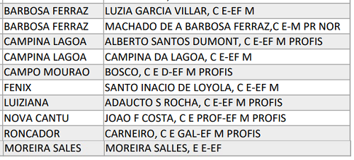 Em todo o estado 177 escolas terão a consulta. Dez delas ficam em oito cidades da Comcam. Em Campo Mourão apenas o colégio Dom Bosco foi incluído (veja a lista acima).