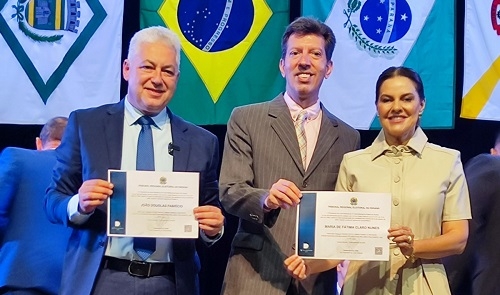 A cerimônia, no Teatro Municipal, também diplomou a vice-prefeita Fátima Nunes e os 13 vereadores eleitos.