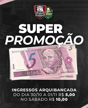 Quem comprar até sexta-feira pagar só R$ 5 na arquibancada (no sábado vai para R$ 10).