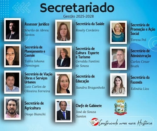 Em Luiziana, o prefeito Edson Liss definiu a equipe de secretários. Falta só o titular para o Meio Ambiente. Por enquanto, são mais secretárias que secretários (6 a 5). Entre as mulheres nomeadas, está a primeira-dama Edinéia Liss, que assumiu a Secretaria da Fazenda. Já a esposa do ex-prefeito Cláudio Pol, Tereza Pol, foi nomeada secretária de Promoção e Ação Social.