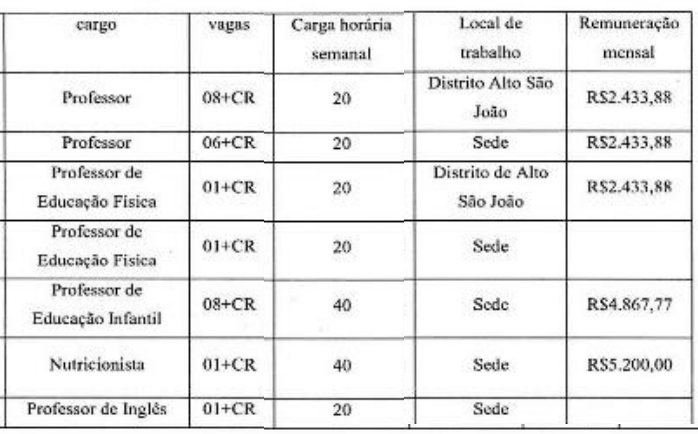 A prefeitura de Roncador abriu Processo Seletivo Simplificado com 26 vagas mais cadastro de reserva para sete cargos. As vagas são para professor e nutricionista na sede do município e no distrito de Alto São João. Os salários variam de R$ 2,4 mil a R$ 5,2 mil. As inscrições podem ser feitas até o próximo dia 14 no protocolo geral da prefeitura.