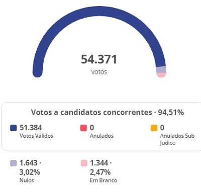 Foram 51.384 votos nos três prefeitáveis, 1.643 nulos e 1.344 em branco.