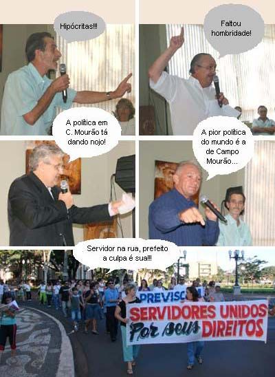 Hoje nem precisou a gente inventar os balõezinhos. Tudo isso que está escrito nos cinco clics acima foram ditos mesmo. E todas as fotos são de ontem. Dilmar Dallefe, Roosevelt Gonçalves Virgínio, Nestor Bisi e Nelson Tureck aparecem discursando durante a reunião sobre a Santa Casa, pela manhã, na prefeitura. Abaixo deles, a passeata do Sindicato dos Servidores, no final da tarde, pedindo um servidor de carreira para o comando da Previscam. Ah, mas tudo num dia só? Depois falta assunto para as outras colunas...