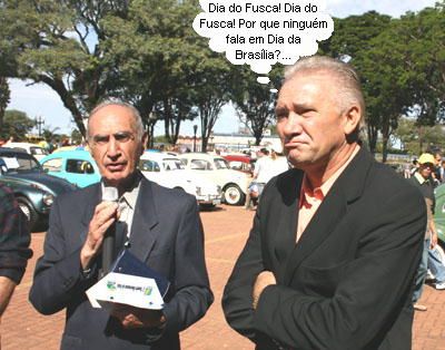 Olha aí mais um clic do ex-prefeito Milton Luiz Pereira discursando durante o 3º Encontro Mourãoense do Fusca. Ao lado dele, o prefeito Nelson Tureck faz cara de choro. Será mágoa pela criação do Dia do Fusca e nada de criarem o Dia da Brasília? Talvez. Certo é que Tureck não sancionou a lei, não. A promulgação do presidente da Câmara, Eraldo Teodoro, foi publicada ontem. Saiu a lei do Dia do Fusca (29 de abril) e outras cinco, inclusive o Dia da Não Violência contra a Mulher (25 de novembro) e o Dia do Taxista (25 de julho). Tudo bem. Só não precisava chorar, né?...