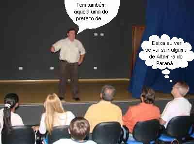 O prefeito Henriquinho (Mamborê) também não se agüentou ao ver vazio o palco da recém inaugurada Casa da Cultura de Altamira do Paraná. Durante vista ao prédio, promovida pelo prefeito anfitrião Ademar Klein, domingo passado, Henriquinho fez uma apresentação no palco. Mas nada de declamar poemas como o jornalista Maran da Motta França. O prefeito preferiu contar um “causo” ocorrido em comício do prefeito de Campina da Lagoa, Celso Ferreira. Segundo Henriquinho, foi o próprio Ferreira quem contou a história e, por isso, ela é pública. Hummmm, mas os “causos” da campanha de Mamborê, quem vai contar, hein?...