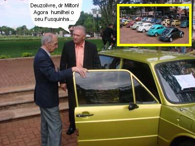 Além de Milton Luiz Pereira, o prefeito Nelson Tureck e o vereador Sidnei Jardim também discursaram no Encontro do Fusca. Ficaram lado a lado e tudo. Jardim é o autor da lei que criou o Dia Municipal do Fusca (29 de abril). Ele lembrou que o projeto foi aprovado pelos outros nove vereadores. Ah, mas que a idéia do 29 de abril surgiu aqui, neste humilde “saitezinho”, ninguém lembra. Isnf, isnf, isnf...