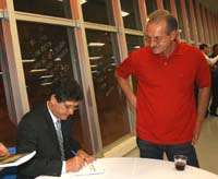 O coordenador geral da prefeitura, César Stanziola, pelo visto foi o único que teve sua ficha de filiação no PMDB abonada duas vezes. No sábado à noite, o “abono” foi dado pelo vice-governador Orlando Pessuti, mas antes, à tarde, o deputado federal Hermes Frangão também tinha dado seu visto na fichinha dele (foto). Ah, deve ser pra ter certeza que tava filiado mesmo...