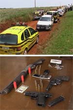 A PM se mobilizou ontem na busca de quatro homens que assaltaram um ônibus durante a madrugada (fotos, Marcos de Souza/TV Total). A voz de assalto foi dada perto de Peabiru, mas os ladrões fugiram próximo a Luiziana. Dez viaturas se envolveram na operação e três homens foram presos. Também foram apreendidas armas, incluindo uma 12. Eita! E “nóis” assustados com o Rio...