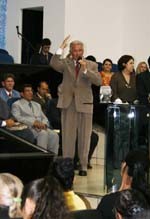 O prefeito Nelson Tureck abriu anteontem à noite, na igreja Assembléia de Deus, a programação em comemoração pelos 60 anos de Campo Mourão (foto). A abertura foi com um culto ecumênico. O prefeito teve direito a discursar para os fiéis. Aí, falou do compromisso de promover a industrialização alimentícia do município. Ah, imagine se iria perder a chance...