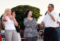 Olha aí mais clics do evento que comemorou, sexta-feira, os 40 anos da associação dos municípios da região de Cascavel (Amop). A prefeita Dina Cardoso (Farol) estava por lá e não perdeu a chance de conversar com o senador Alvaro Dias e com o prefeito Beto Richa (Curitiba). Os dois tucanos disputam uma batalha interna pra ver quem será candidato a governador no ano que vem. E, pelo visto, já estão atrás de voto em Cascavel...