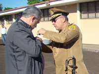 As comemorações pelos 157 anos da Polícia Militar no 11º BPM, ontem, incluíram uma homenagem ao deputado Douglas Fabrício. Ele recebeu a Medalha Coronel Sarmento, que é uma das mais altas condecorações que a PM concede a civis. Antes que se diga que o batalhão tá tendencioso, melhor deixar claro que o prefeito Nelson Tureck já recebeu uma dessas. No mais, não confunda Sarmento com sarnento, hein?...
