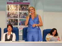 Ontem foi dia da 3ª Conferência Municipal da Mulher. Segundo a prefeitura, cerca de 300 mulheres participaram. Olha aí a vice-prefeita Regina Dubay fazendo o seu discurso. A secretária da Mulher de Maringá e presidente do Conselho Estadual da Mulher, Terezinha Pereira Ramos, foi palestrante. Ela é irmã do prefeito José Cláudio, que morreu no mandato. Irmã do prefeito do PT no governo dos Barros? Ah, família...