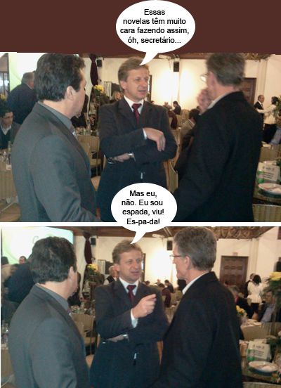 O presidente da Acampar/UVB, o jurandense Bento Batista, deu entrevista na RPC/Globo no último encontro estadual de vereadores, em Curitiba. Só que não foi por causa de sua nova posse como presidente da entidade, não. Foi porque mais de 100 vereadores estavam inscritos para a palestra como secretário de Estado Luiz Carlos Hauly (Fazenda) e menos da metade apareceu por lá. Ô gente, vá ver ser perderam na capitar, uai!...