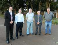 O desembargador Noeval de Quadros esteve esta semana em Peabiru. Junto com o juiz da comarca, João Alexandre Zarpellon, com o prefeito João Carlos Klein e o presidente da Câmara, Barão Rodrigues, foi conhecer o Lar Carlinhos e o terreno da antiga laminadora, onde deve ser construído o novo fórum de Peabiru. Mas atenção! Araruna tá na briga e ofereceu um terreno centro. Mas sem briga, hein gente?...