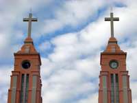 Olha só quem está voltando: os relojões da Catedral. O clic, feito sexta-feira à tarde, mostra um deles já no lugar e outro sendo instalado. Na reforma da igreja, concluída no início do ano, os relógios tinham sido substituídos por placas com a frase “São José, rogai por nós”. Eles tinham sido consertados em 2004, mas duraram pouco. E dizem as “más línguas” que quando os relojões param, a cidade para junto. Toc, toc, toc...
