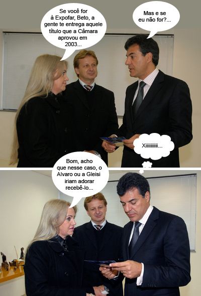 O coordenador geral Carlos Severino, foi à reunião do Conseg e, em nome do prefeito Nelson Tureck, pediu que Benedito Lúcio de Souza permanecesse na presidência. Aliás, sete secretários e três diretores da prefeitura estavam presentes. O vereador Sidnei Jardim deve ter dado graça a Deus de ter sessão na Câmara e ter que sair logo no início da reunião, afinal, era muito tureckista junto pra sua cabeça...