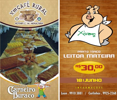 Acontece hoje (20h), no Celebra, o lançamento da 21ª Festa Nacional do Carneiro no Buraco. O evento foi criado para que seja feita uma apresentação do que será a festa para a imprensa, patrocinadores e entidades participantes. Nos últimos anos, no entanto, o jantar foi crescendo, crescendo, crescendo que, se manter o ritmo, logo ficará maior que a festa de julho. E a “barraca” do Celebra é bem mais confortável, né?...