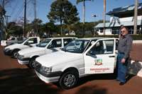 A prefeitura de Mamborê adquiriu três veículos 0 km para utilização em diferentes setores. Os carros já estão na cidade há alguns dias, mas ainda aguardam a licitação do seguro para começarem “no batente”. São dois Unos, que custaram R$ 25,5 mil cada, e uma camionete Fiat Strada, que saiu por R$ 32 mil. E olha aí o prefeito Ricardo Radomski todo faceiro na hora da chegada dos carros novos...